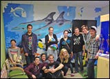 La Maestra’s Culture and Healing through Arts (CHA) program flourishes with major art installations in the City Heights health center. In July 2011, “Rising Star” by artist Terry Hansen, a talented San Diego resident and longtime La Maestra patient renowned for his woodworking ability, is installed in the lobby. The star is made of repurposed exotic wood from around the globe, steam bent to fit the curve of the wall. In December 2011, local teens paint animal-themed murals in the pediatrics exam rooms.